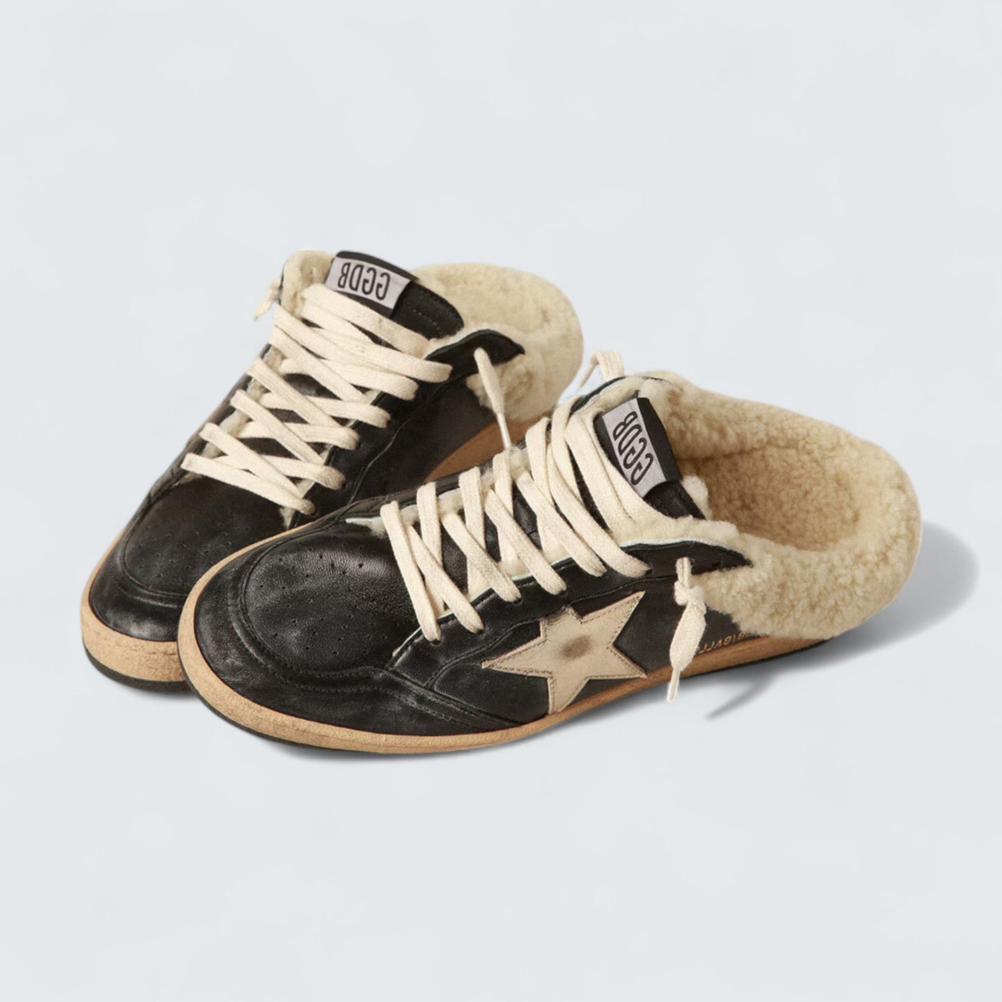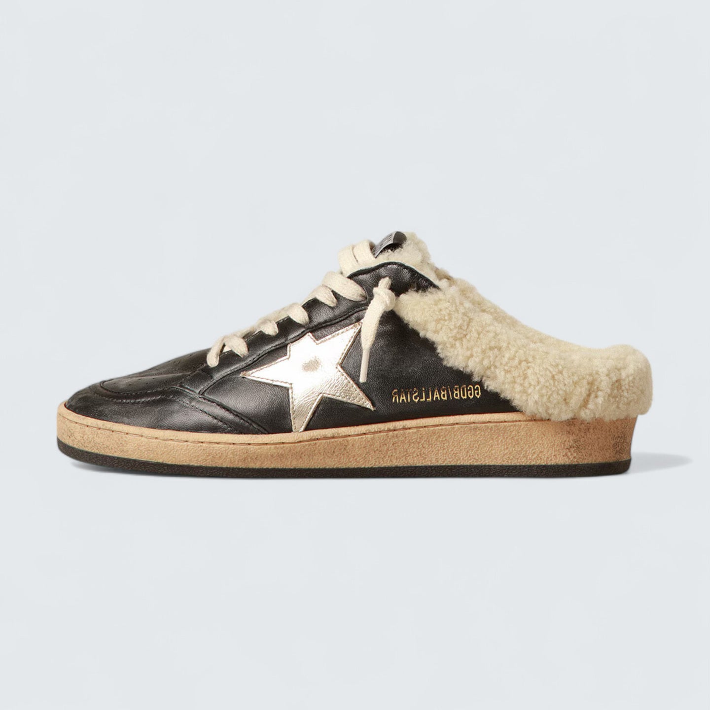 Ball Star Sabot 'Black Nappa with Platinum Star and Shearling Lining'