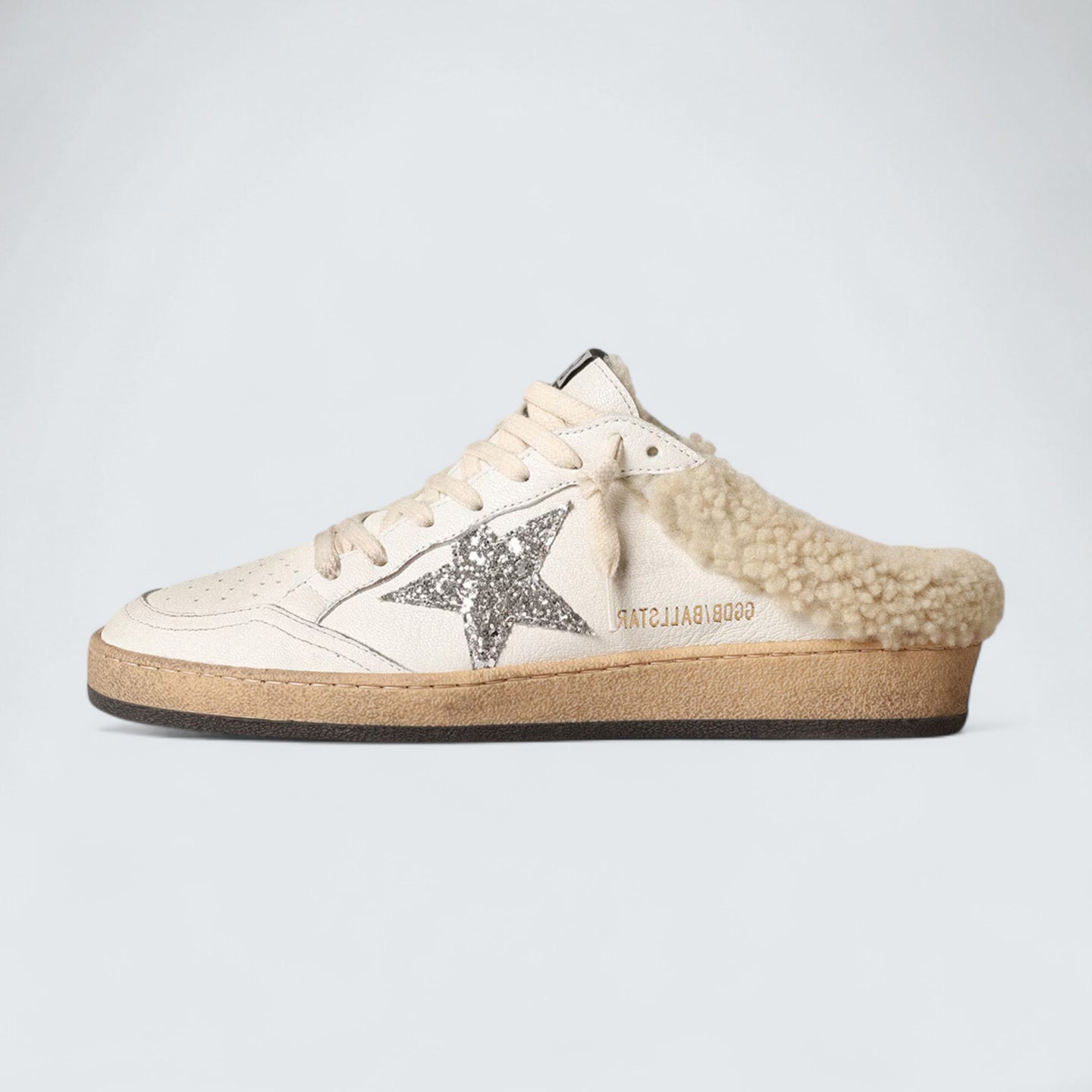 Ball Star Sabot 'White Nappa with Silver Glitter Star and Shearling Lining'
