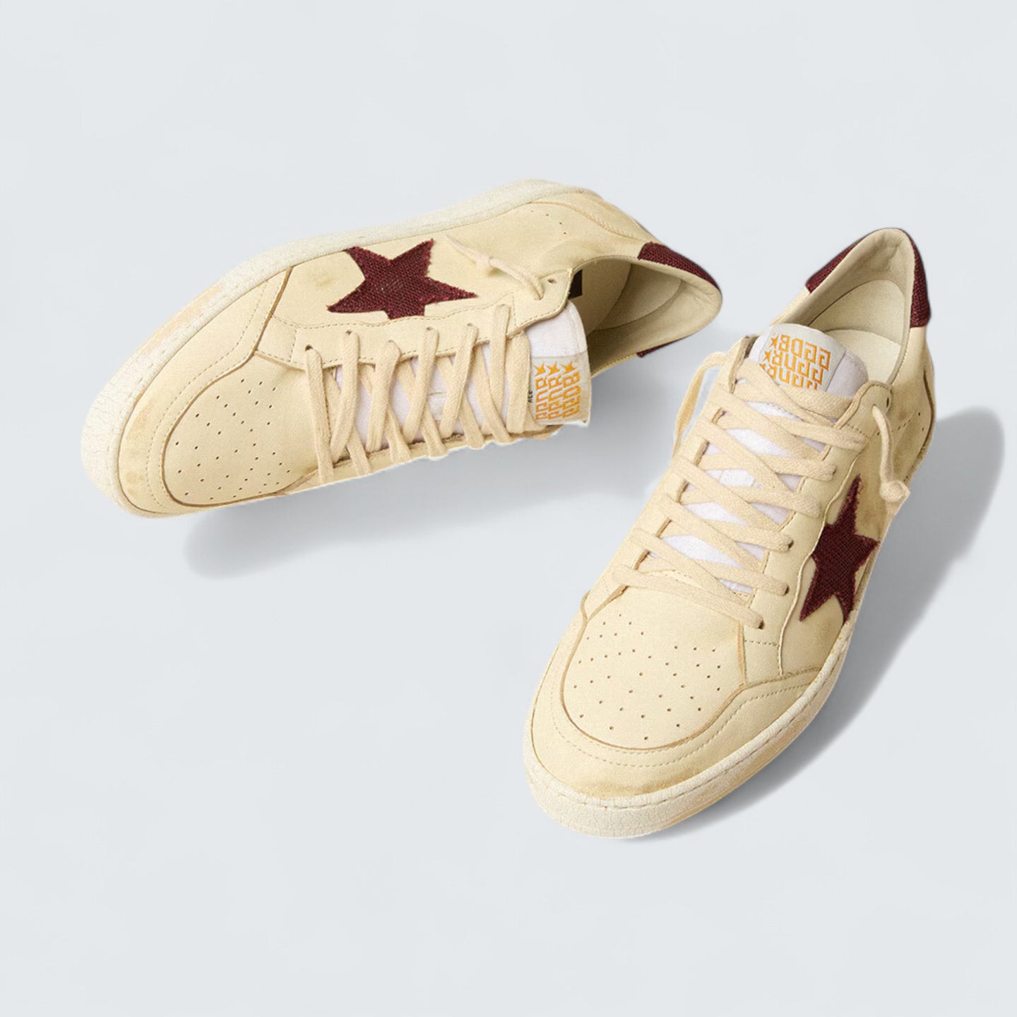 Ball Star 'Beige Nappa with Burgundy Mesh Star and Heel Tab'