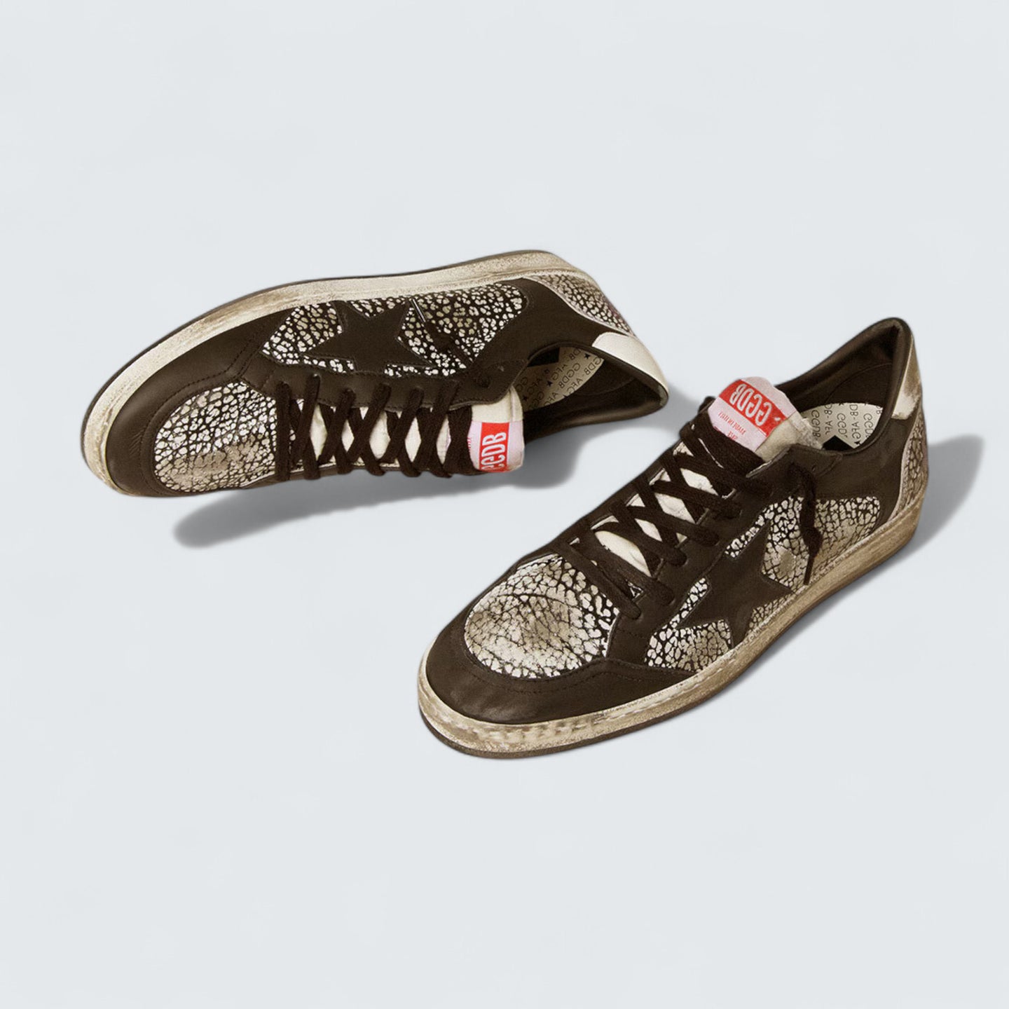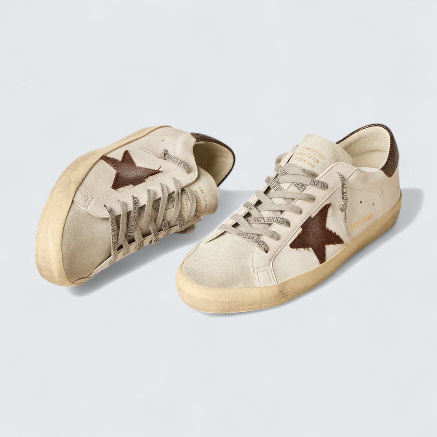 Ball Star 'Cream-White Nappa and Mesh with Brown Suede Star and Brown Leather Inserts'
