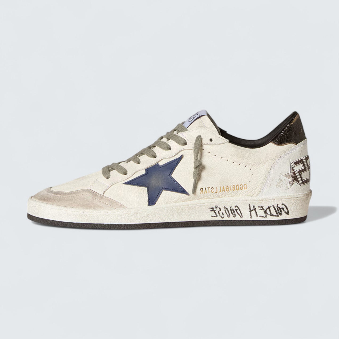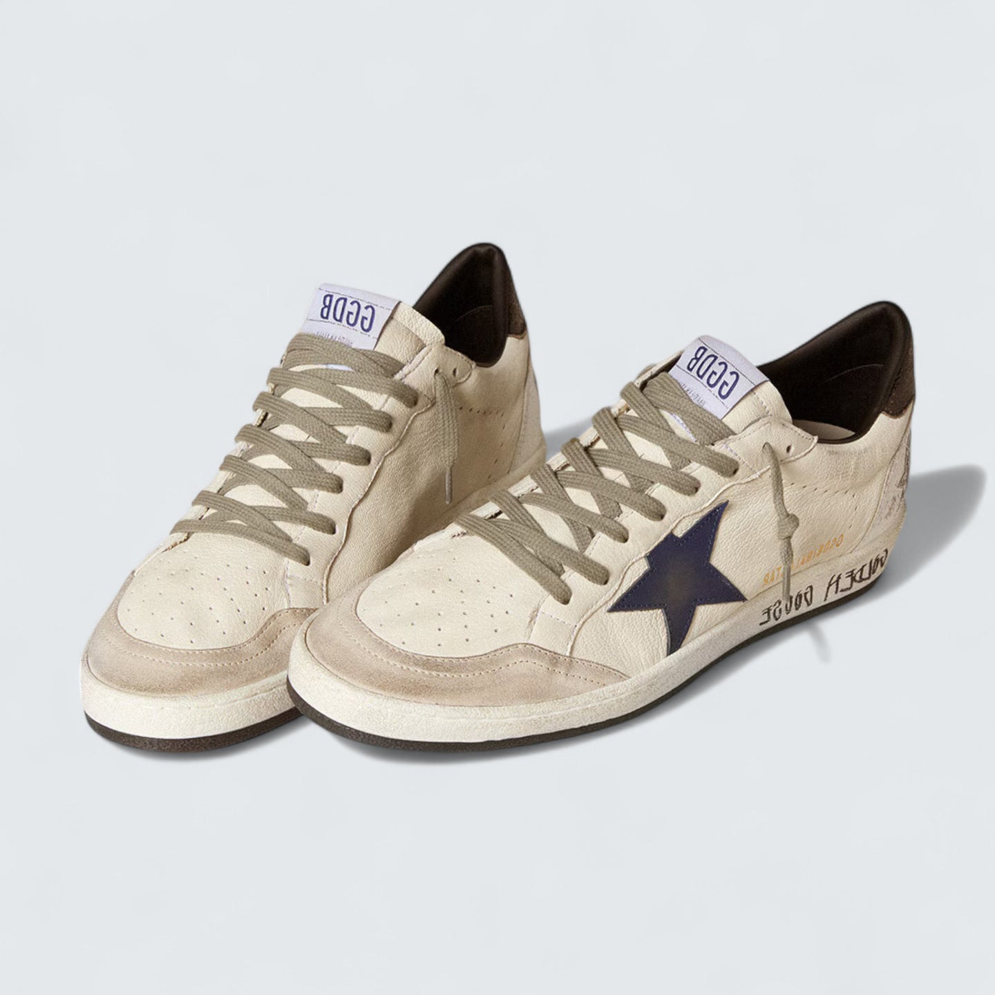 Ball Star 'Ecru Leather with Dark Brown Leather Star and Navy Blue Suede Heel Tab'