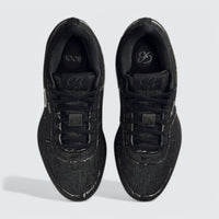 The Nike Book 1 'Black Label' features a bold, all-black aesthetic built for both elite performance and off-court style. Its rugged black denim upper is detailed with raw edges and reinforced with tonal overlays, offering a durable structure with a streetwear edge. The off-white outlined Swoosh adds a striking visual contrast, while red accents on the outsole and tongue branding elevate the design.