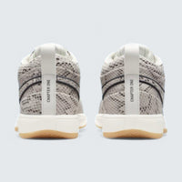 The Nike Book 1 'Python' brings a luxurious edge to Devin Booker's signature line, featuring an all-over snakeskin-textured leather upper in Light Orewood Brown. This design pays homage to the classic Air Python, a staple in Booker's off-court rotation. The upper is complemented by a black embroidered Swoosh outline, cream laces, and a gum rubber outsole, creating a refined yet bold aesthetic.