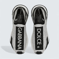 The Dolce & Gabbana Fast Rhinestone-Embellished Sneakers 'Off-White/Black' turn heads with a crystal-coated upper and bold contrast trim.
