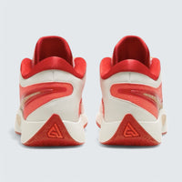The Nike Zoom Freak 6 'China' celebrates Giannis Antetokounmpo’s global impact with a design inspired by Chinese culture. The upper features a Sail mesh base complemented by Bright Crimson overlays and Coconut Milk accents, symbolizing luck and prosperity. A unique woodgrain-textured Swoosh adds a distinctive touch, while Chinese characters encircle Giannis' logo on the tongue, honoring his name's translation. Additional details include a playful mushroom graphic on the insole and an embroidered food caricature on the medial side, paying homage to Chinese culinary traditions.