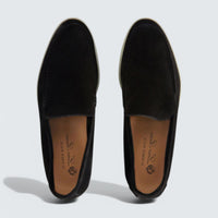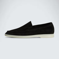 The Loro Piana Summer Walk Loafer 'Black' epitomizes refined minimalism with its sleek silhouette and rich suede finish. Crafted from premium suede in a classic black hue, it features a full calfskin lining and a lightweight rubber sole. The non-slip rubber sole is embossed with the Loro Piana monogram, ensuring both style and functionality. A timeless design that seamlessly complements sophisticated summer ensembles.