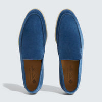 The Loro Piana Summer Walk Loafer 'Cobalt Ink' captures the essence of refined leisure with its sleek silhouette and rich suede finish. Crafted from premium suede in the deep Cobalt Ink hue, it features a full calfskin lining and a lightweight rubber sole . The non-slip rubber sole is embossed with the Loro Piana monogram, ensuring both style and functionality. A timeless design that seamlessly complements sophisticated summer ensembles.