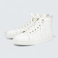 Christian Louboutin Louis Calf Leather White High-top Sneaker blends minimalist elegance with luxe craftsmanship and vintage athletic flair.