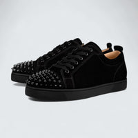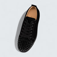 Christian Louboutin Louis Junior Spikes Veau Velours Black blends vintage athletic charm with refined edge and Italian luxury craftsmanship.