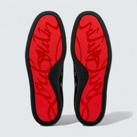 The sneaker sits on a rubber creeper sole finished with the iconic red lacquered outsole, delivering grip and unmistakable Louboutin identity.