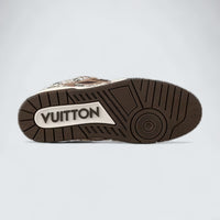 Louis Vuitton LV Skate Sneaker 'Brown/White' fuses luxury heritage motifs with athletic design for refined streetwear elevation.
