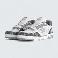 The Louis Vuitton LV Trainer Sneaker 'Grey' reimagines the house’s iconic silhouette with oversized proportions and tonal elegance.