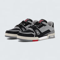 The Louis Vuitton LV Trainer Sneaker 'Black White Rhinestones' is a bold reinterpretation of the house’s iconic silhouette, blending luxury with vintage athletic inspiration.