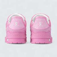 The Louis Vuitton LV Trainer Sneaker 'Rose' reimagines the house’s iconic silhouette with oversized proportions and tonal elegance.