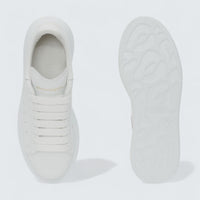 The Oversized Sneaker in White delivers a fully tonal look with smooth white leather and matching laces throughout. Subtle paneling and a rounded toe keep the silhouette clean and refined. The signature oversized sole provides height with cushioned comfort. A timeless monochrome essential built for everyday wear.