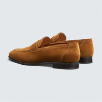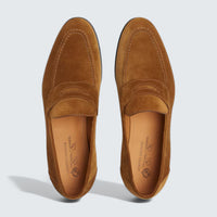 Crafted from smooth calfskin leather in a warm Tan hue, it features an almond-shaped apron toe, a classic penny keeper strap, and a supple leather lining for superior comfort.