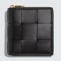 The Small Cassette Compact Zip Wallet 'Black' by Bottega Veneta reimagines daily essentials with padded geometry and signature restraint.