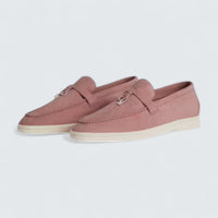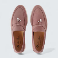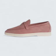The Summer Charms Walk Loafer 'Flowering Cherry' by Loro Piana adds a delicate blush of color to its timeless loafer design.