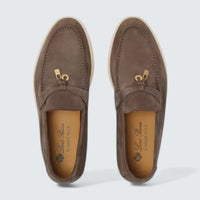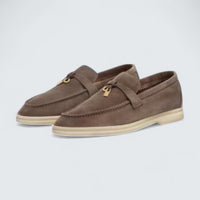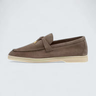 The Summer Charms Walk Loafer 'Rain Drops' by Loro Piana brings a serene, misty blue tone to its refined loafer silhouette.
