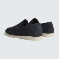 The Loro Piana Summer Walk Loafer 'Classic Blue' embodies refined minimalism with its sleek silhouette and rich suede finish. Crafted from premium suede in the Classic Blue hue, it features a full calfskin lining and a lightweight rubber sole . The non-slip rubber sole is embossed with the Loro Piana monogram, ensuring both style and functionality. A timeless design that seamlessly complements sophisticated summer ensembles.