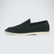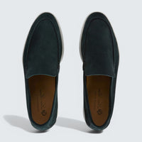 The Loro Piana Summer Walk Loafer 'Dark Green' exemplifies the brand's commitment to understated elegance and artisanal craftsmanship. Crafted from premium suede in the deep Dark Green hue, it features a full calfskin lining and a lightweight rubber sole. The non-slip rubber sole is embossed with the Loro Piana monogram, ensuring both style and functionality. A timeless design that seamlessly complements sophisticated summer ensembles.