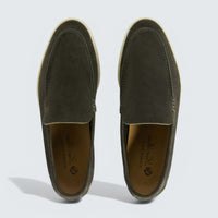 The Loro Piana Summer Walk Loafer 'Mimetico' embodies refined minimalism with its sleek silhouette and rich suede finish. Crafted from premium suede in the Mimetico hue, it features a full calfskin lining and a lightweight rubber sole. The non-slip rubber sole is embossed with the Loro Piana monogram, ensuring both style and functionality. A timeless design that seamlessly complements sophisticated summer ensembles.