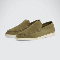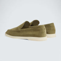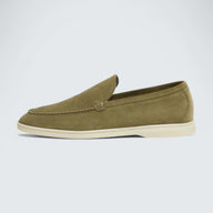 The Loro Piana Summer Walk Loafer 'Murano Green' exemplifies the brand's commitment to understated elegance and artisanal craftsmanship. Crafted from premium suede in the rich Murano Green hue, it features a full calfskin lining and a lightweight rubber sole. The non-slip rubber sole is embossed with the Loro Piana monogram, ensuring both style and functionality. A timeless design that seamlessly complements sophisticated summer ensembles.
