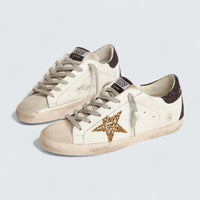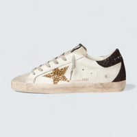 Super-Star 'White Nappa Leather with Gold Glitter Star and Black Glitter Heel Tab'
